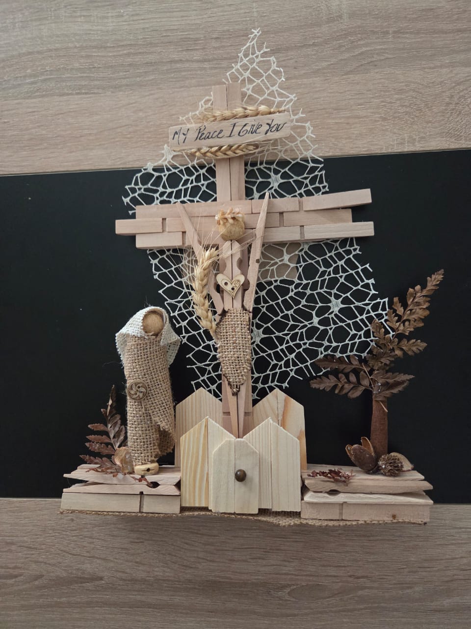 Five years ago, I heard a divine Call from Jesus Himself, speaking to my spirit: “I want you to craft Crucifixes.” I did not hesitate or question; I simply obeyed. Though I am no carpenter like my father, He revealed the Way to me. A few days later, through the internet, I discovered a Crucifix crafted from clothespins. Having already mastered the art of using a hot glue gun, I found it easy to bring His Call to life.